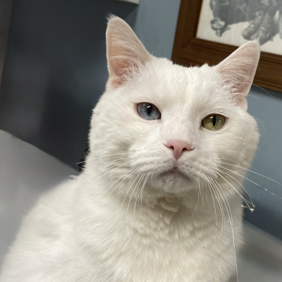 Bill is a very sweet and well mannered gentleman. He is the jack of all trades whether it is greeting clients, disciplining Leonard or Ginger, quality control tasting of food, supervising, or providing much-needed emotional support–he does it all. He is very fond of doing quality control on GI treats and Churu, ensuring that they are adequate for our patients. He takes his responsibilities as office manager very seriously, ensuring that his employees are doing their jobs exceptionally while providing emotional support when needed. He does not shy away from the strenuous and laborious work of cuddling. Although, sometimes he prefers his personal space from patients. When he is not hard at work, you can find him sleeping on a bed in the lobby, a chair in the treatment room, one of the CCS team’s chairs, or on the computer in our pharmacy.